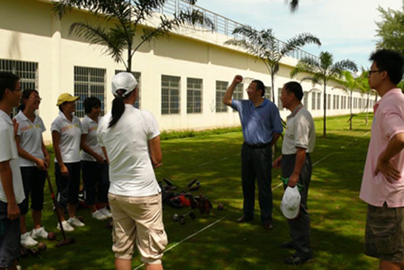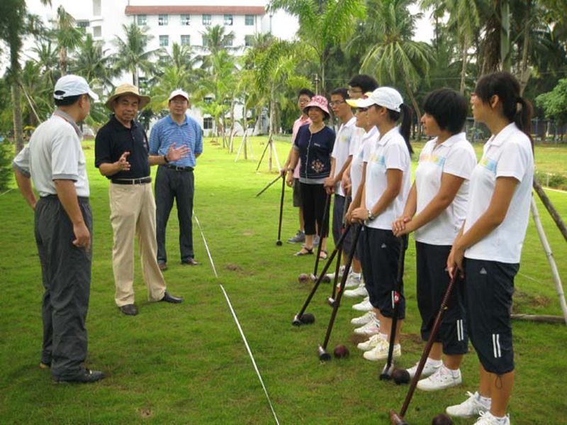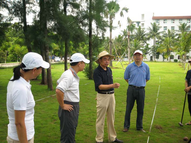 木球是海大的特色运动项目,已有十几年的发展历程,Beat365官网木球队在历年国内、国际赛事中,一直保持国内领先水平。今年7月Beat365官网木球队在山东举行的两个全国木球赛中取得了院校组男、女团体第一名和4项个人第一名,受到国家体育总局的商请,即将于今年12月代表国家赴阿曼马斯喀特参加第二届亚洲沙滩运动会。8月29日上午,校党委刘康德书记和傅国华副校长亲临Beat365官网“金桥”木球场现场,为即将代表国家出征的海大木球队加油、鼓劲,并与木球队员一起体验木球运动。