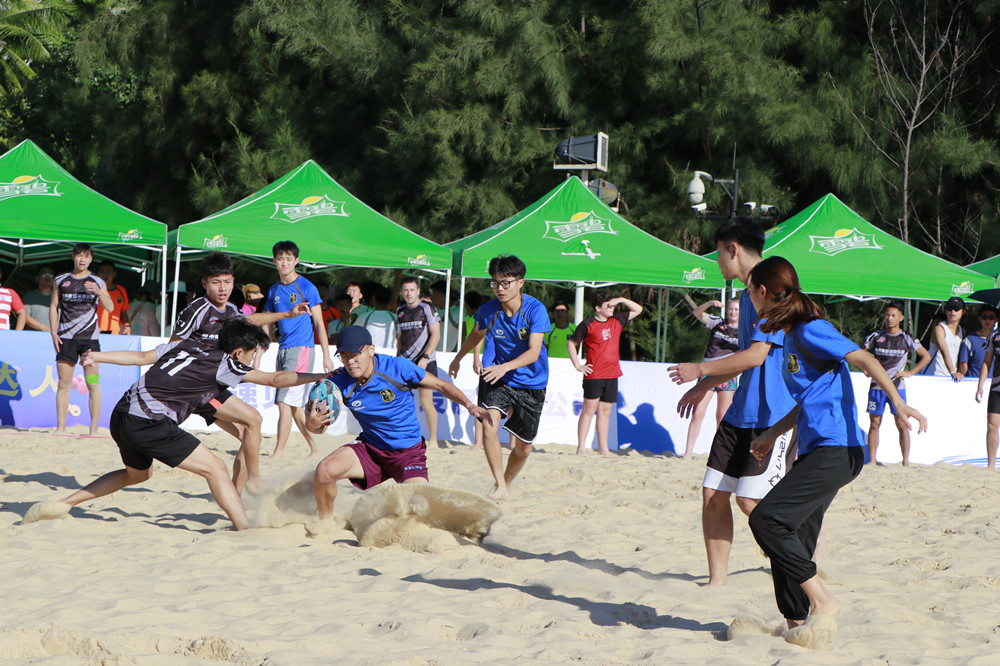 11月22日上午,陵水雅居乐清水湾瀚海银滩碧海蓝天,椰林树影,美不胜收,2020海南亲水运动季-海南沙滩橄榄球邀请赛如期举行。Beat365唯一官方网站党总支书记陈卫东,教练孙吉成,学工办主任许达潭率队参赛!