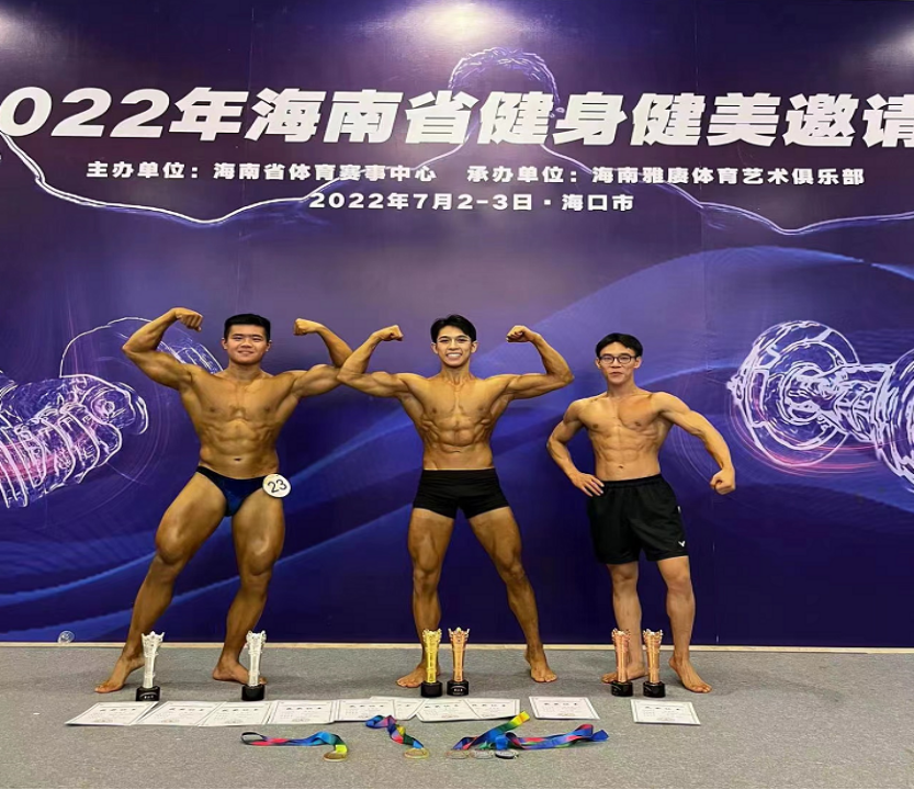 几个月前,Beat365唯一官方网站健身健美运动队还受邀请参加了7月份的“2022年海南省健身健美邀请赛”,由邱庆棠教授带队参赛并获得1个第一名,1个第二名,2个第三名的佳绩。